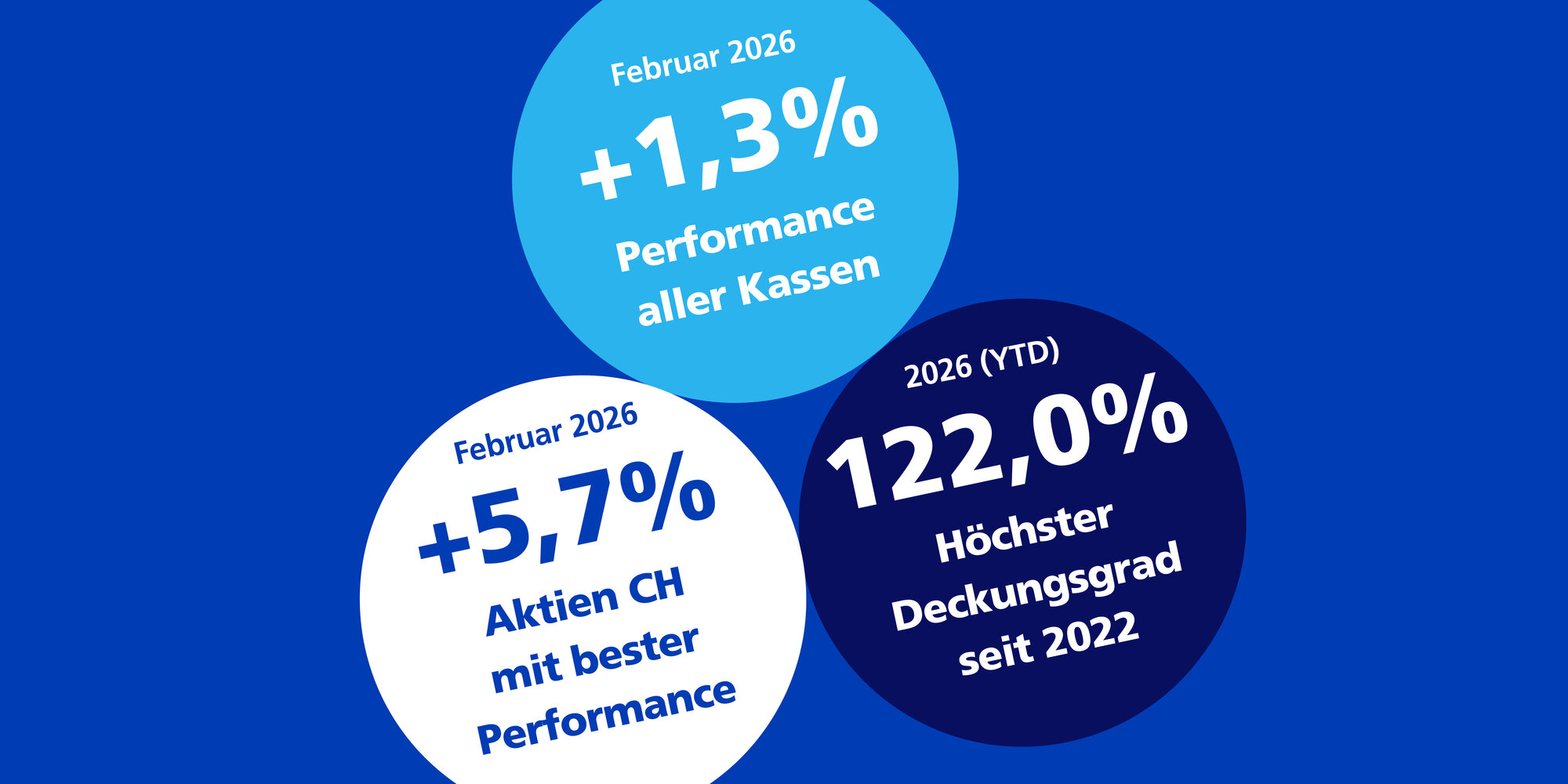 • Deckungsgrad: Nachdem der kapitalgewichtete Deckungsgrad der privatrechtlichen Kassen Ende 2025 auf 120,6 Prozent gestiegen war, erreichte er im Februar gemäss unserer Hochrechnung 122 Prozent. Somit wurde die Bestmarke vom Januar nochmals übertroffen. Die öffentlich-rechtlichen Kassen mit Vollkapitalisierung erzielten einen Deckungsgrad von 116,8 Prozent, jene mit einer Teilkapitalisierung 93,5 Prozent.