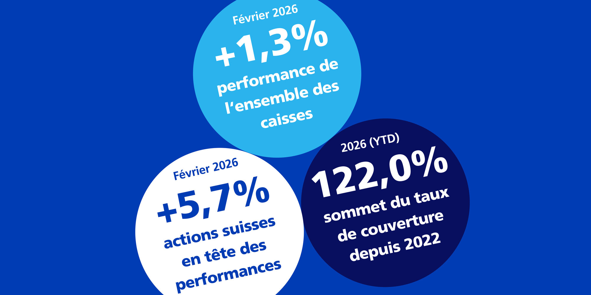 • Taux de couverture Après avoir atteint 120,6% fin 2025, le taux de couverture pondéré par les actifs des caisses de droit privé s’est établi à 122,0% en février selon nos estimations, dépassant ainsi le niveau record du mois précédent. Les caisses publiques affichent un taux de couverture de 116,8% pour les institutions entièrement capitalisées et de 93,5% pour les institutions partiellement capitalisées.